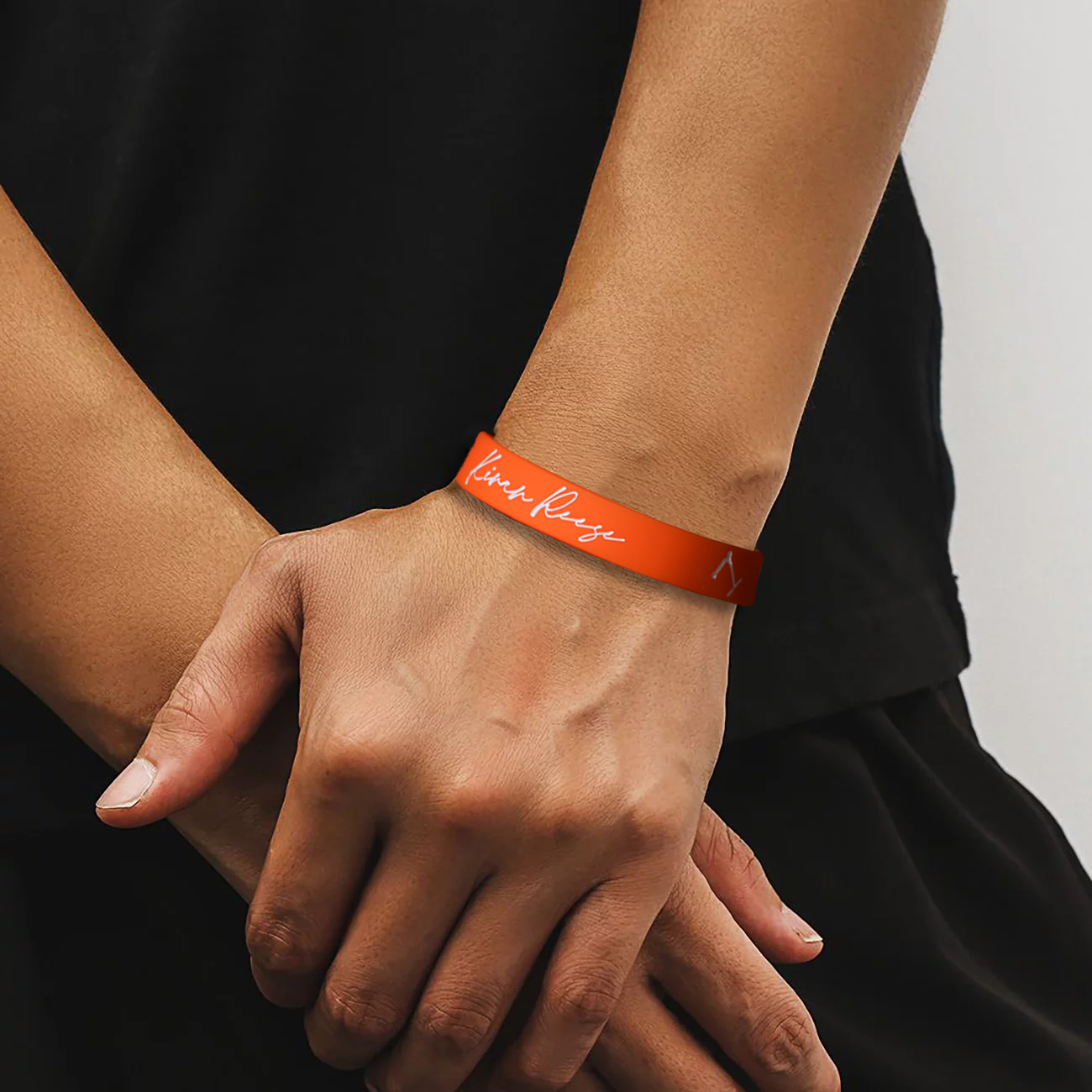 Eingestanzte Schrift mit Signatur von Kiran Reese und abgebildetem Stunt Scooter